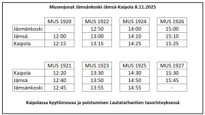 Lättähattu-museojunat Jämsänkoski-Jämsä-Kaipola 8.11.2025