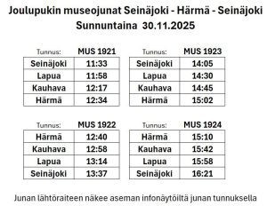 Joulupukin Lättähattu-museojunat Seinäjoki- Härmä